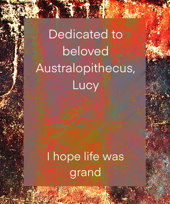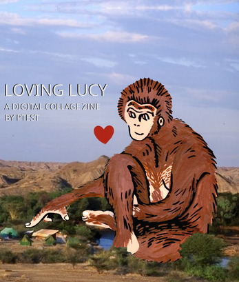 Digital collage + traditional art zine about the human penchant for romanticist behavior, destruction, and Lucy, the Australopithecus specimen from 1974.
